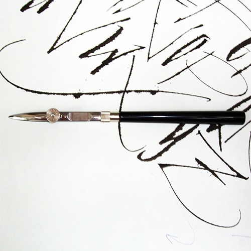 Dit is een klassieke trekpen waarmee een lettertekenaar scherpe lijnen kon trekken. Voor moderne kalligrafie gebruik je deze pen om informele lettervormen mee te schrijven.